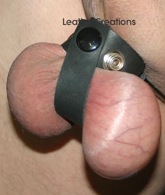 Diagram of snap placement Click for larger | The ball stretcher , with the added delight (?) of a leather separator to further enhance the feeling. All are made with nickel plated brass snaps with black tops - to prevent rusting. |
